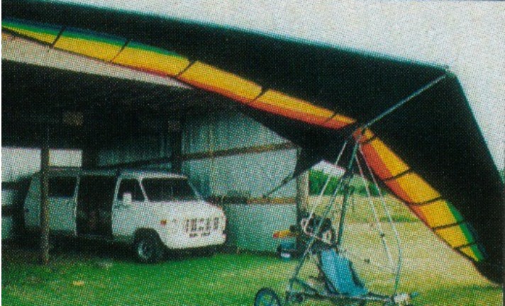 Nick converted the Storm Buggy to single seat configuration and used it for various sporting events until 1981, when serious production of single seaters began, using initially the 340 Sachs engine, toothed ¬belt reduction, and his own newly developed three bladed nylon propeller. Although still called Storm Buggy, this model was suitable for a wide variety of Rogallos and by 1982 was usually found with a Flexiform Sky Sails Medium Striker wing.