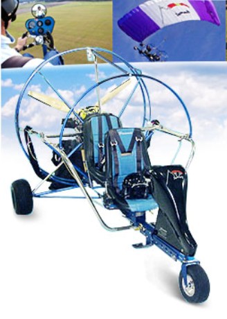 A one-seater powered parachute, constructed with 6061T6 – Tubing + Plate, 304SS – Stainless Steel, and AN bolts. The risers are nylon webbing. The airframe/ cart, seat belts, and upholstery colour range is optional.