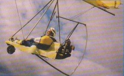 This composite trike with retractable undercarriage was designed to power hang glider wings. In flight the rear undercarriage (which weighs only 6.5 kg) folds back along the cockpit sides.