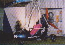 This experimental machine is an attempt to mate three axis controls to a Rogallo wing. It uses the same power pack as the TR1 MkII trike unit, plus a modified Sabre wing. The trike unit is fixed to the wing structure rather than being sus¬pended from it, and the wing is mounted much lower than the normal hang point of a trike.