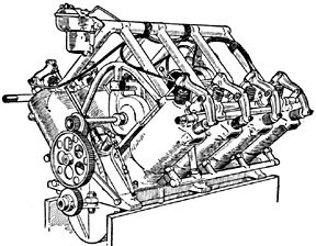 The eight-cylinder V engine was water cooled, of 502.64ci, and produced 80hp@1500rpm with a dry weight of 285 lb.